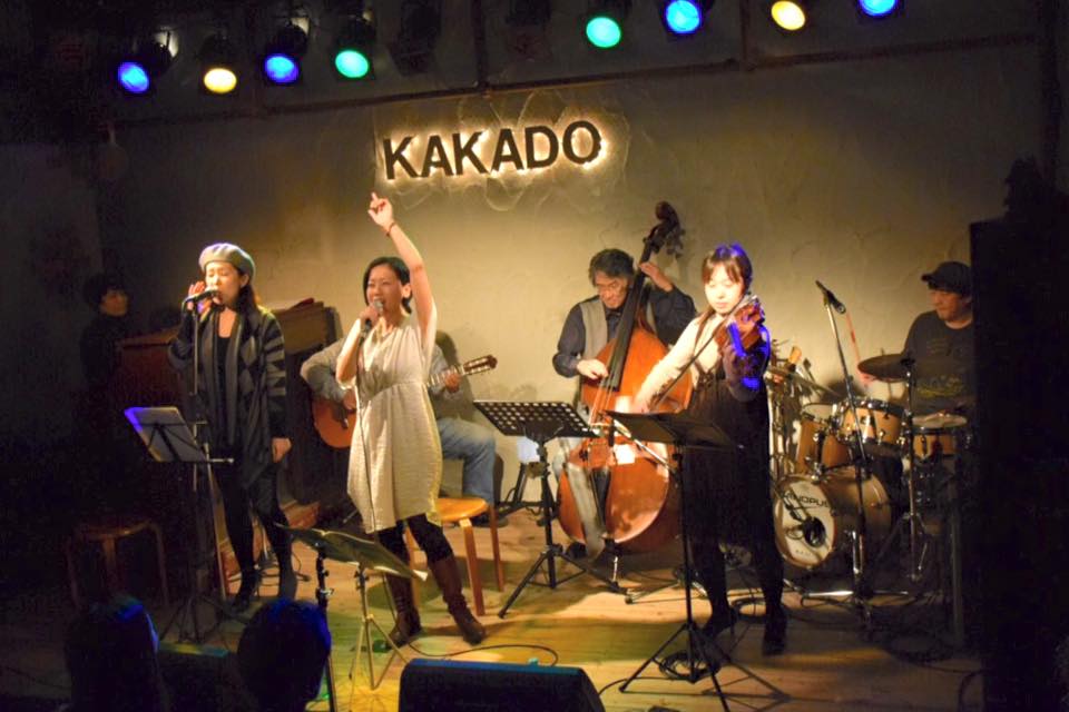 今回はゲストとして前回に引き続きピアノに広重千草さん、コーラスに熊瀬川貴子さんお迎えし、加えて今回初めてベースに平井伸二さん、ヴァイオリンに橋本安以さんをお迎えし、最大7名という大所帯での演奏となりました。終演後「次回は10人編成くらいになるんじゃないか」という冗談を言っていたのですが、本当にそうなるかもしれません。